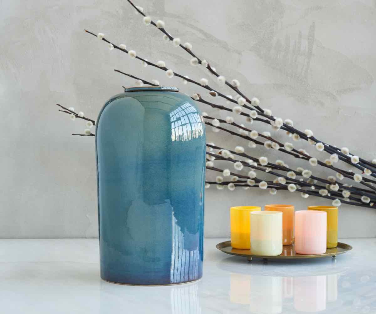 Elke urn wordt gemaakt van zorgvuldig geselecteerde natuurlijke materialen. De combinatie van eenvoud en karakter maakt dit een onderscheidend gedenkobject. Kleine imperfecties of variaties in vorm, kleur en afwerking, typisch voor ambachtelijk handwerk, geven elke keramische blauw urn authenticiteit en een unieke charme.