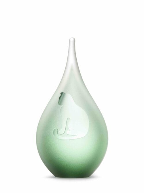 De Dierenurn Katje groen druppel is een liefdevolle en stijlvolle herinnering aan uw trouwe huisdier. Deze handgemaakte dierenurn katje is vervaardigd van hoogwaardig glas en met zorg gevormd door vakmensen. Deze elegante dierenurn heeft een frosted (mat) buitenkant met een glanzend katje, wat zorgt voor een zachte, rustgevende uitstraling. De groene kleur staat symbool voor natuur, balans en nieuw leven, en brengt een gevoel van harmonie en troost.