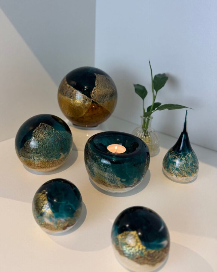 Ontdek de Glazen Kaarshouder urn Turquoise. Deze collectie urnen is met veel aandacht en vakmanschap gemaakt in Italië.
