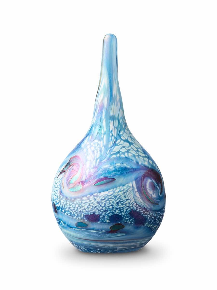 Met de hand vervaardigd uit hoogwaardig kristalglas is elke glazen urn uniek in kleur en afwerking. De Elan-line urn is geschikt voor zowel binnen- als buitenplaatsing en vormt een waar kunstwerk ter herinnering aan een dierbare.