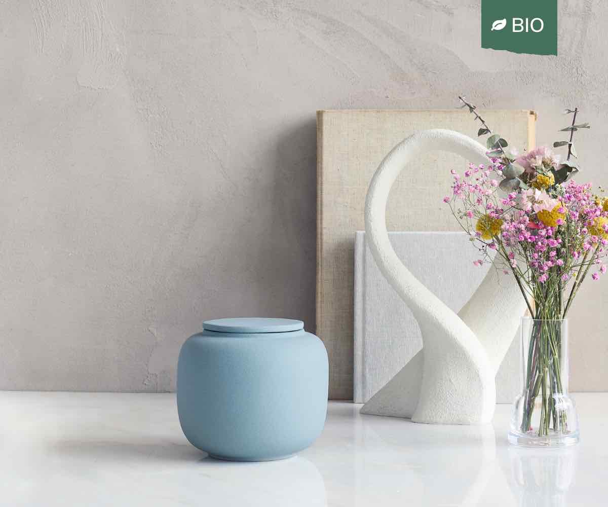 Deze biologisch afbreekbare urn is niet alleen geschikt voor thuisbewaring, maar kan ook worden begraven in een urnenlandschap, urnenbos of urnenveld. Daarnaast is de keramische lichtblauw urn ontworpen om op een respectvolle manier te water te laten, bijvoorbeeld in zee. Zo biedt deze urn meerdere mogelijkheden om afscheid te nemen op een manier die past bij uw wensen.