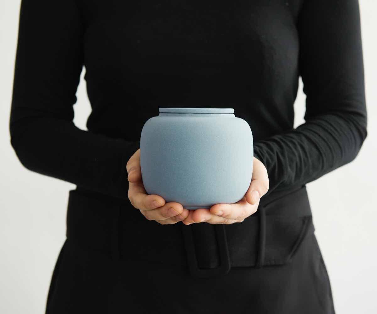 Elke urn wordt gemaakt van zorgvuldig geselecteerde natuurlijke materialen. De eenvoud met karakter en de subtiele lichtblauwe tint maken dit een onderscheidend en elegant gedenkobject. Kleine imperfecties in vorm, kleur of grootte, eigen aan het ambachtelijke proces, geven elke keramische lichtblauwe urn een unieke charme en authenticiteit.