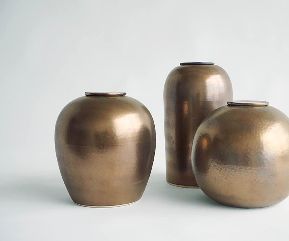 Deze Keramische urn koperkleurig is een stijlvolle urn, handgemaakt in koperkleurig metallic keramiek. Deze keramische koperkleurige urn biedt een serene en waardige plek om de as van een dierbare geliefde in schoonheid en rust te bewaren.